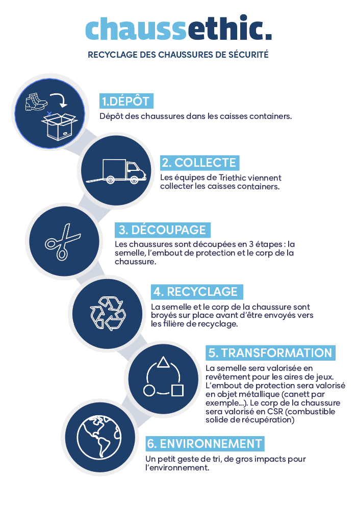 Les chaussures de sécurité sont à déposer dans les caisses containers sans les lacets !